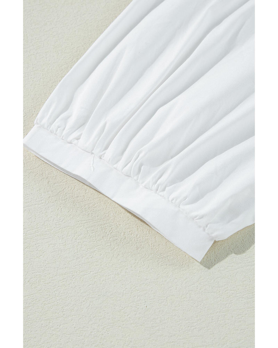 White Bow Knot Cutout Back Loose Fit 3/4 Sleeve Blouse - XL