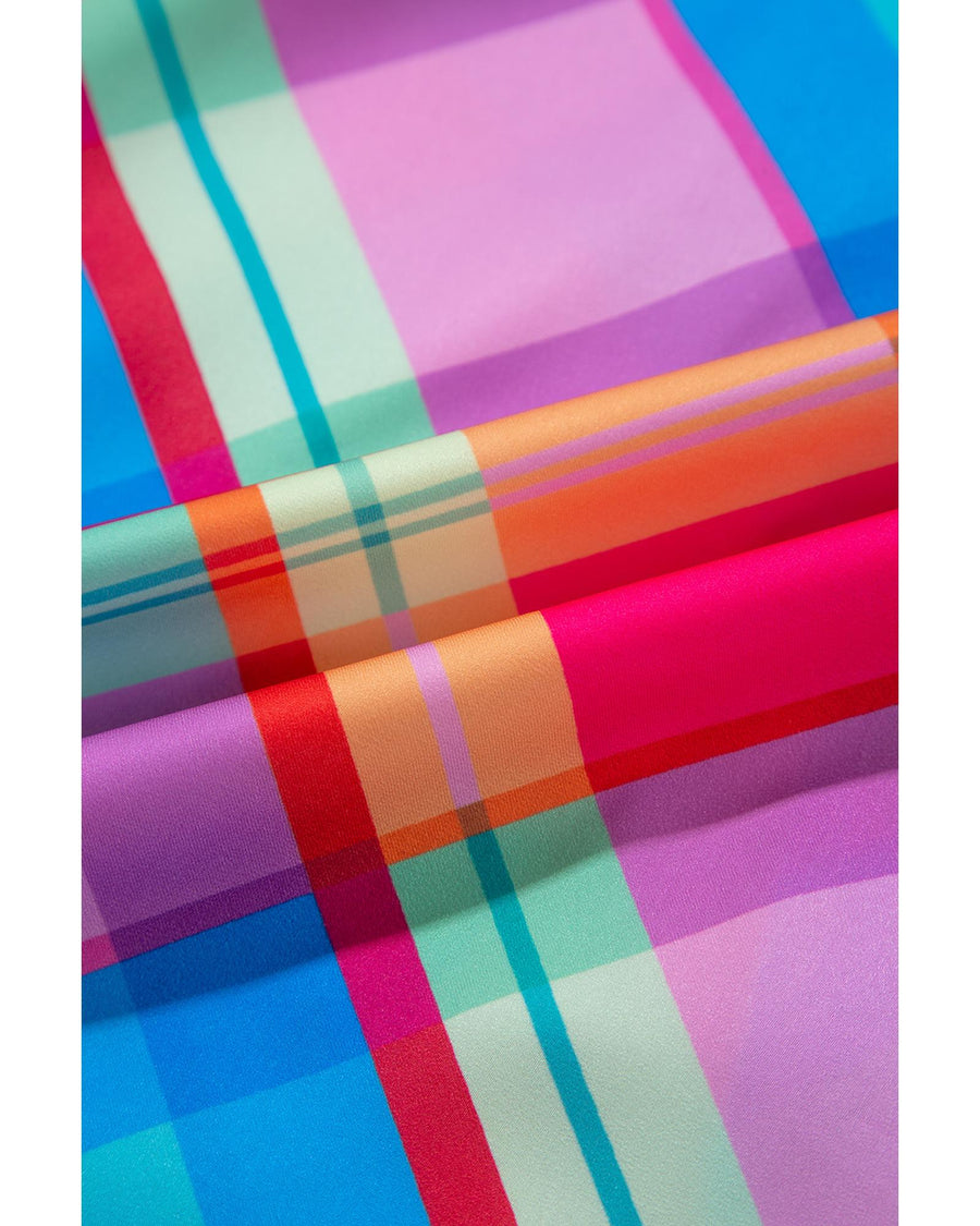 Light Blue Multicolor Plaid Short Sleeve Babydoll Mini Dress - XL