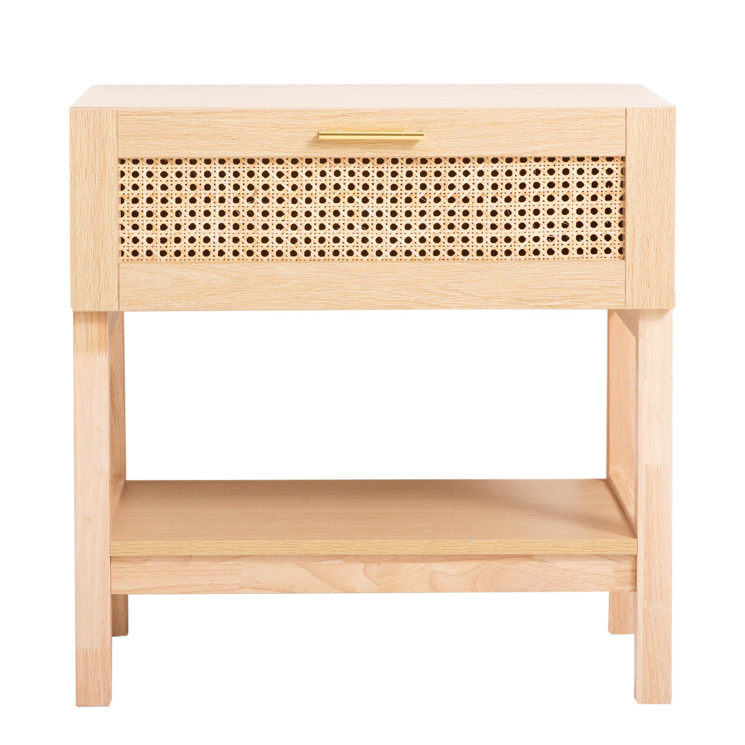 Casa Decor Santiago Rattan Bedside Table Drawers Table Nightstand Cabinet Oak