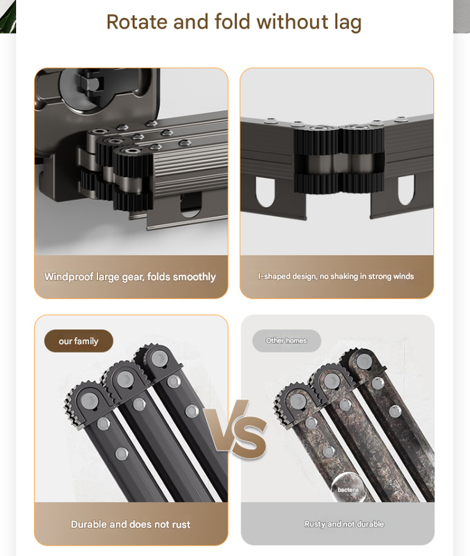 White Wall-Mounted Foldable Clothes Drying Rack - 2-Section Aluminum with 10 Windproof Hooks