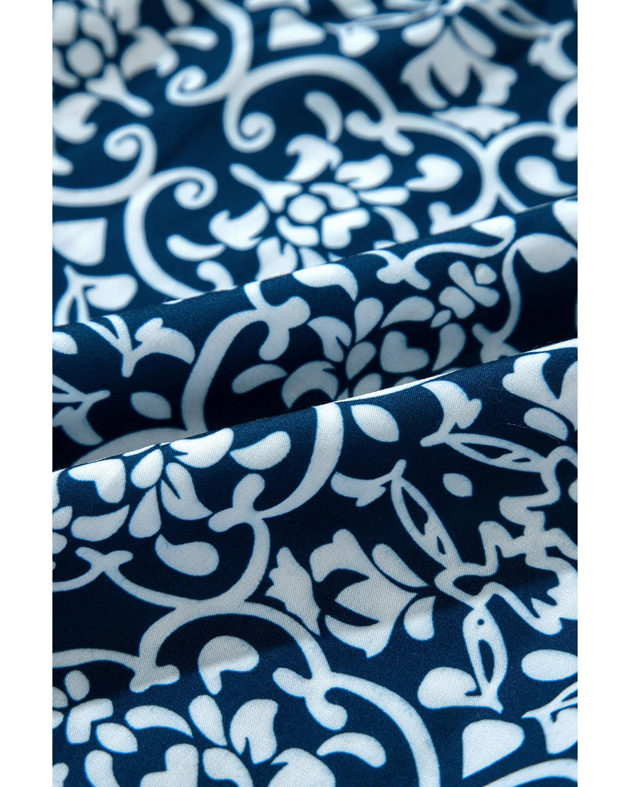 Blue Floral Ric-rac Patchwork Button Loose Fit Shirt - M
