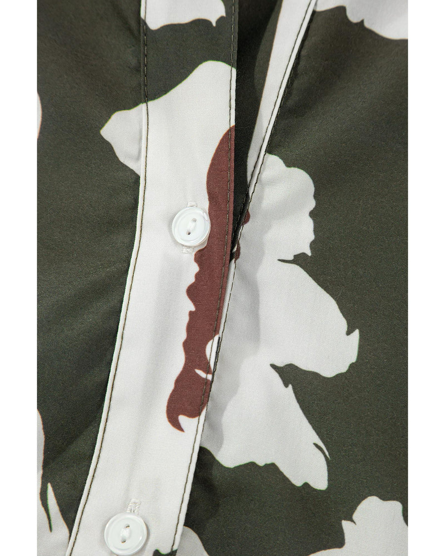 Four Leaf Clover Abstract Floral Print Puff Sleeve Half Button Blouse - XL