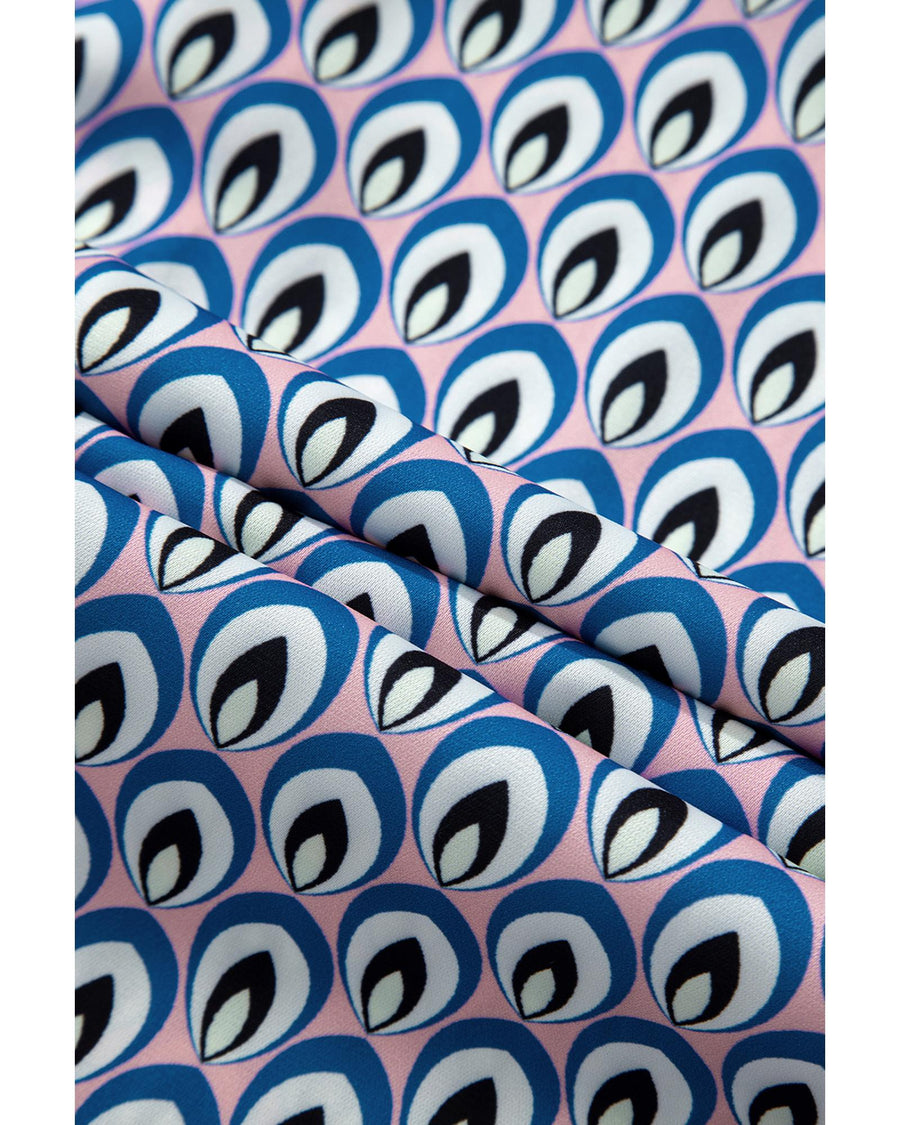 Sky Blue Abstract Print Shirred Cuff Buttoned Oversized Shirt - M
