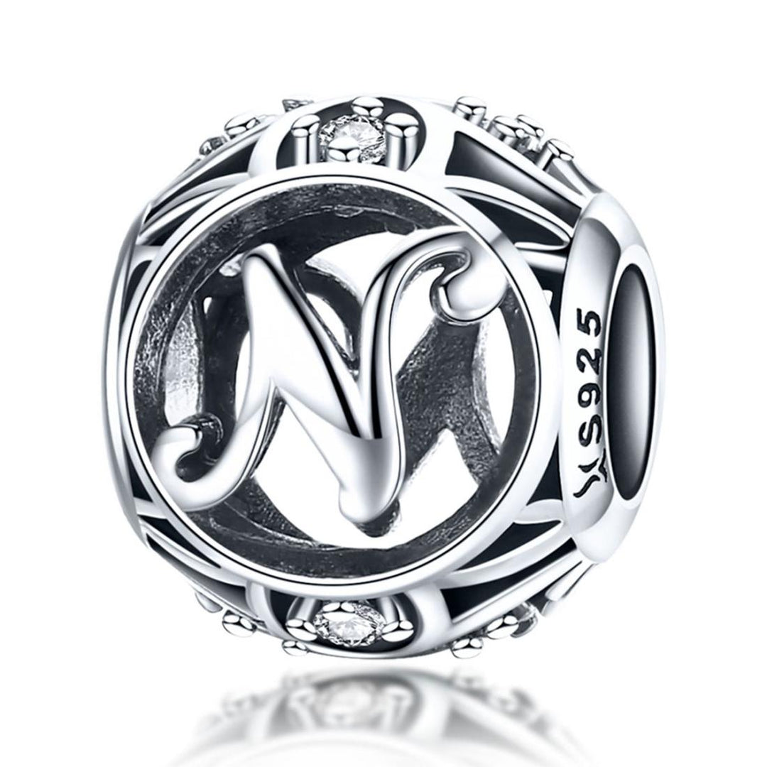 925 Sterling Silver 26 English Letter Beads For Diy Bracelets & Necklaces Style - N