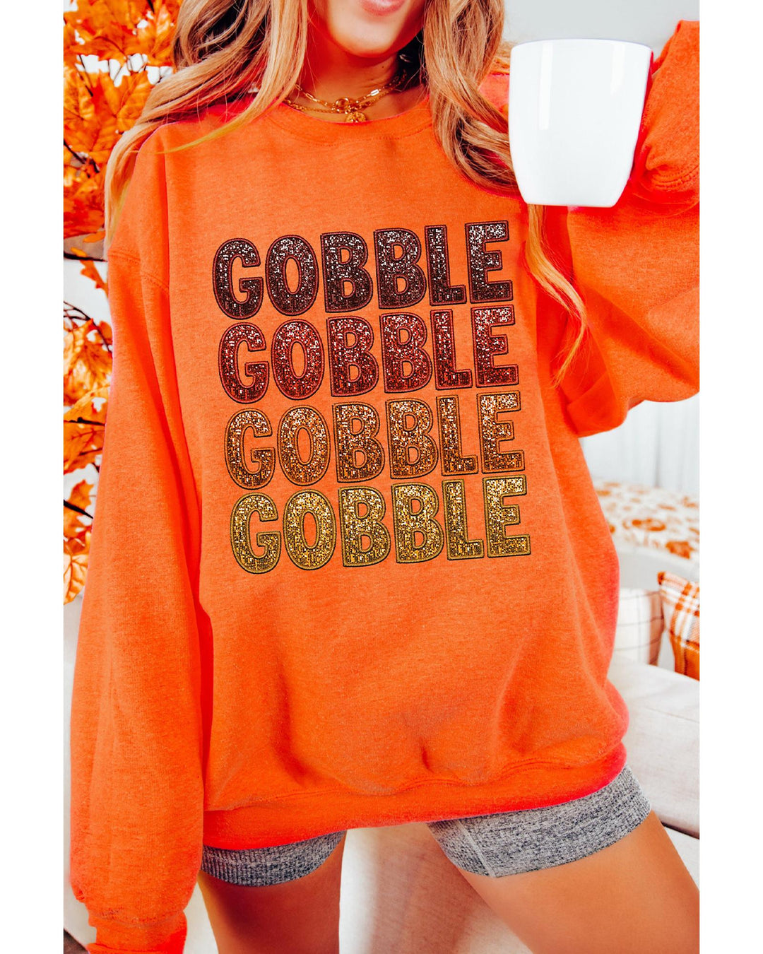 Orange Thanksgiving GOBBLE Print Round Neck Pullover Sweatshirt - M