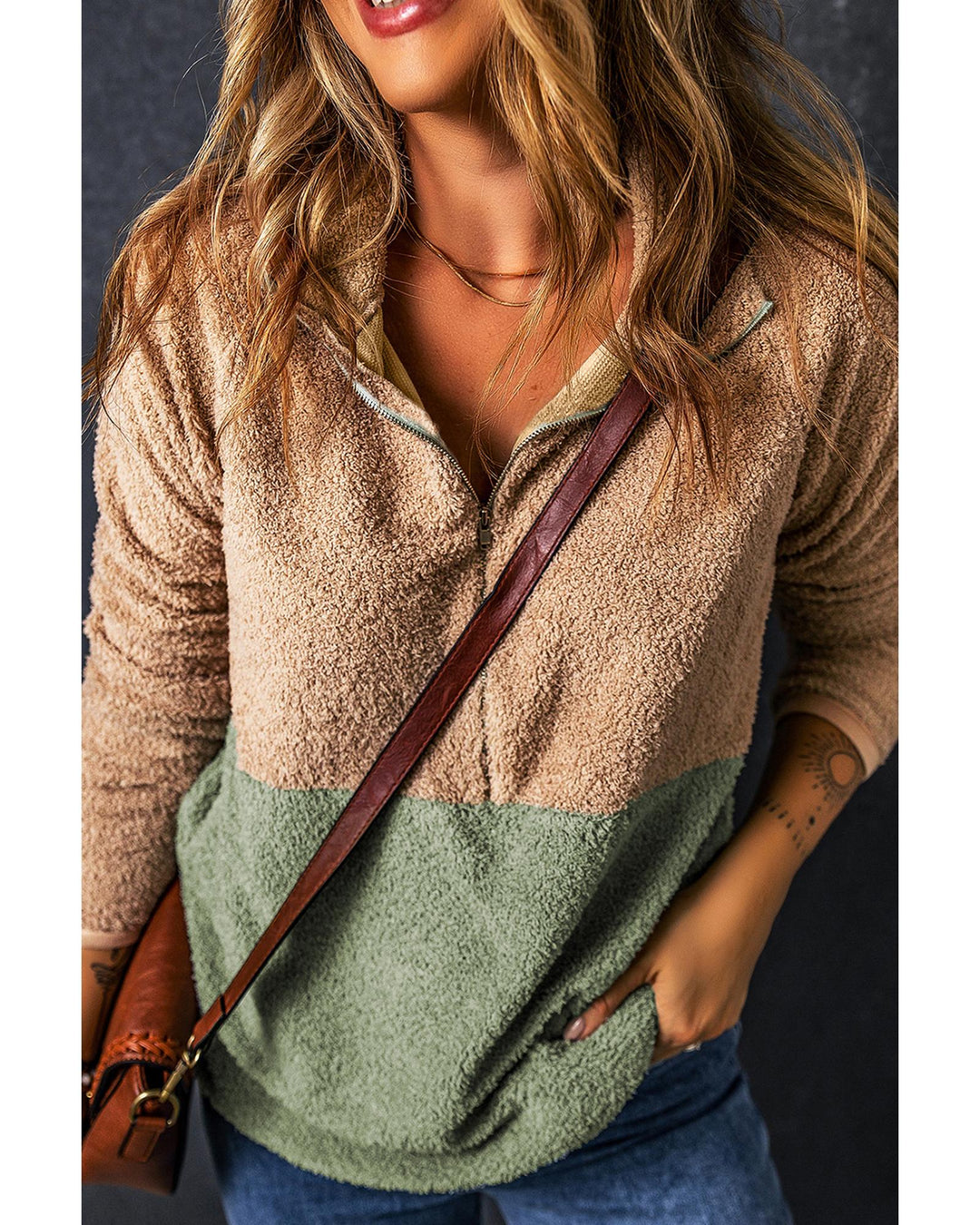 Smoke Gray Two Tones Color Block Half Zip Fleece Sweatshirt - M