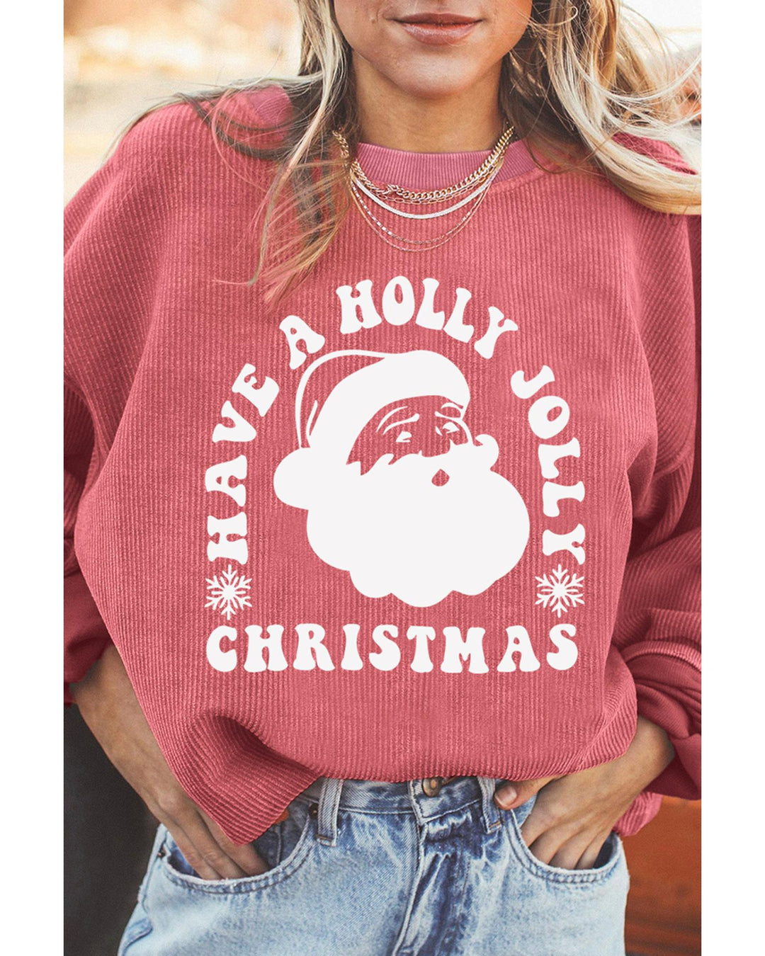 Strawberry Pink HAVE A HOLLY JOLLY CHRISTMAS Corded Sweatshirt - L