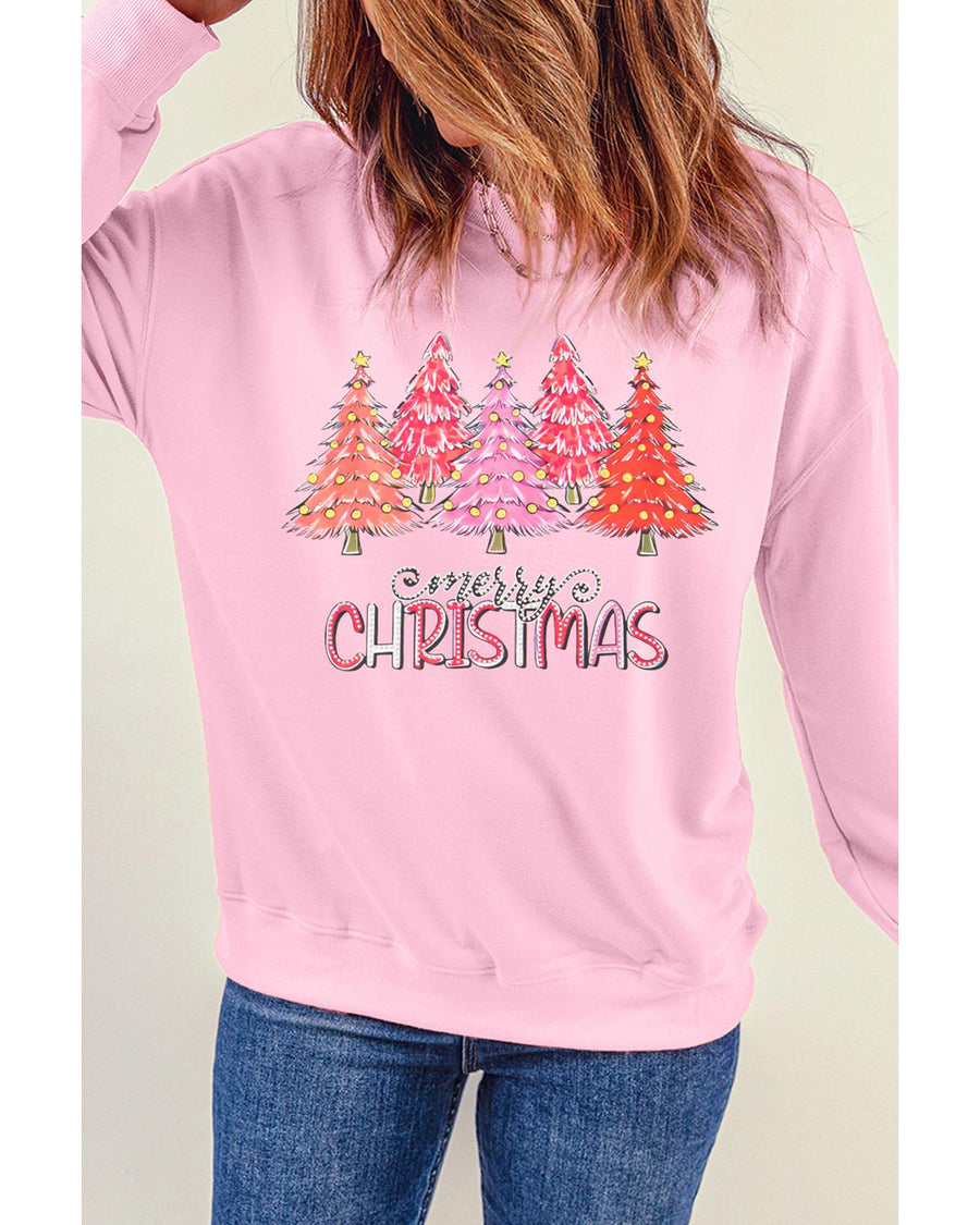 Pink Rhinestone Merry CHRISTMAS Christmas Tree Graphic Sweatshirt - XL