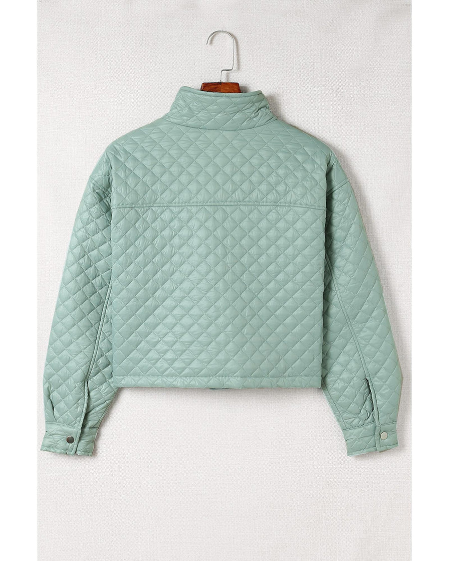 Green Quilted Pocketed Zip-up Cropped Jacket - S