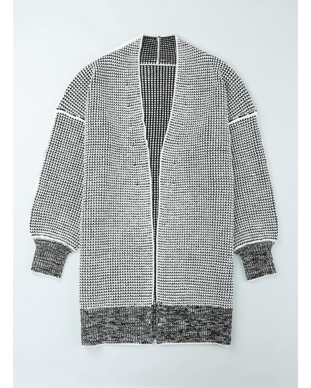 Azura Exchange Gray Plaid Knitted Long Open Front Cardigan - XL