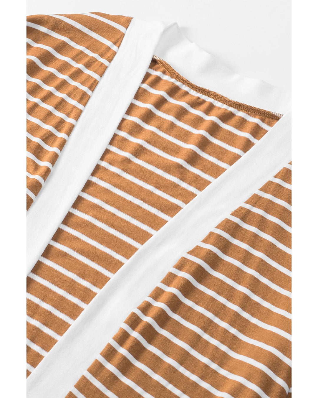 Elevate your wardrobe with our Brown Striped Side Pockets Open Front Cardigan, designed for a trendy fitted look that follows international sizing standards—consider choosing one size up for the best fit. This versatile cardigan features a stylish striped pattern and is perfect for layering over a simple t-shirt or blouse, offering a chic and effortless flair. Made from a comfortable blend of 95% polyester and 5% elastane, it’s an essential piece that adds both style and functionality to any outfit. Check our sizing chart to find your perfect match!