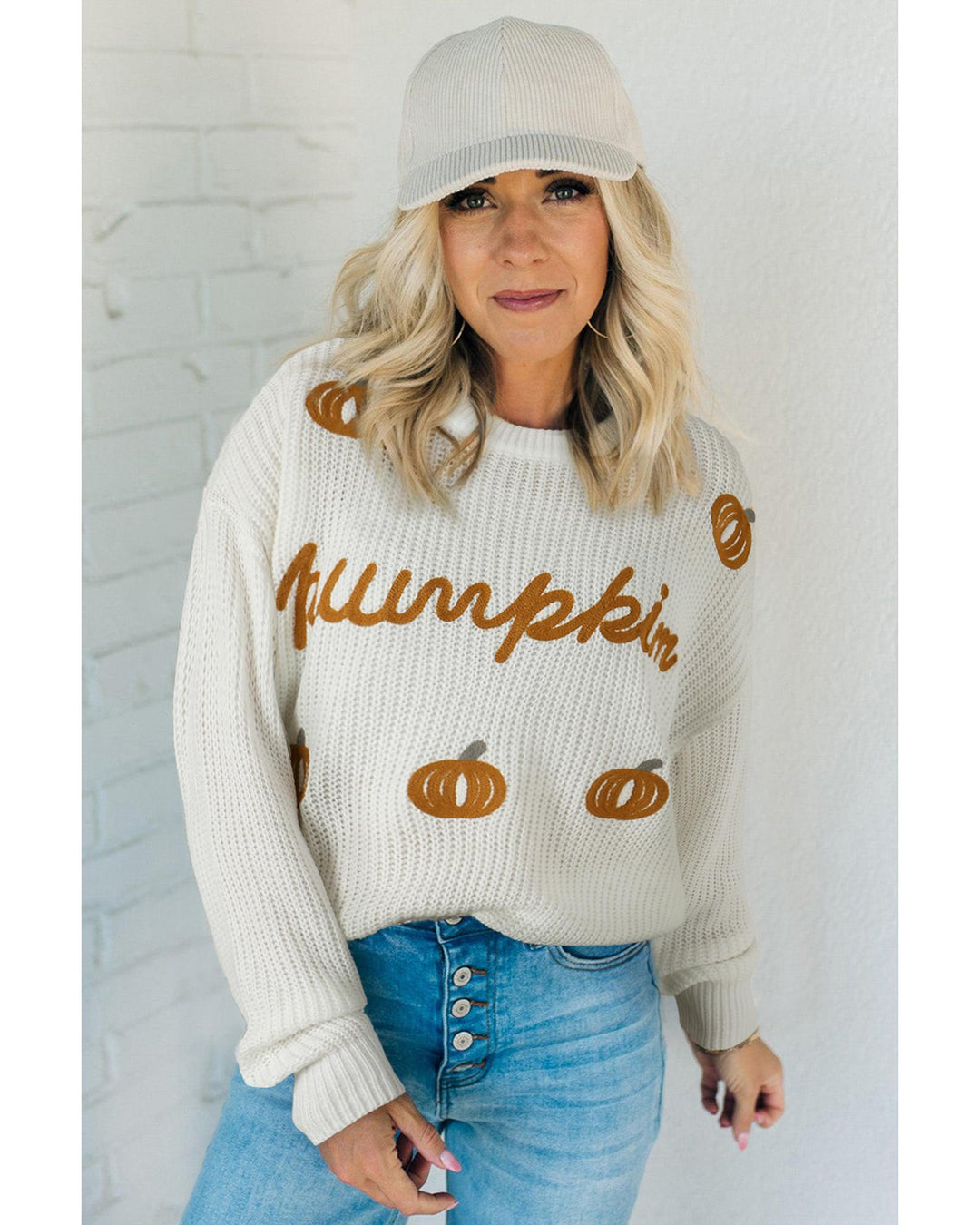 White Pumpkin Yarn Stitch Ribbed Knit Sweater - M