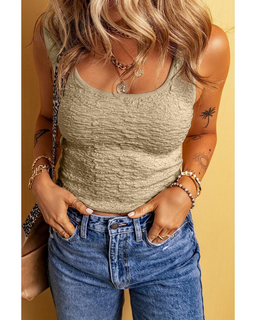 Beige Stripe Loose Knit Fringe Tank Top - 2XL