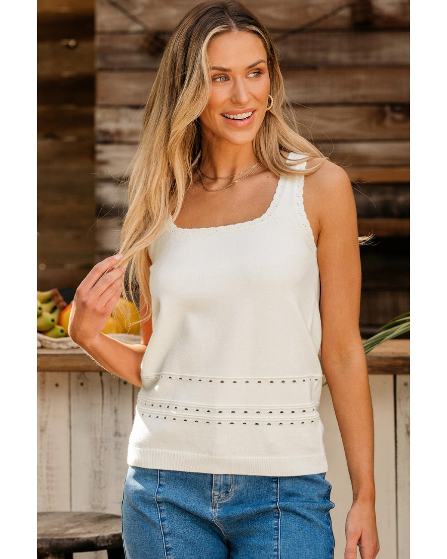 White U Neck Eyelet Accent Sweater Vest - 2XL