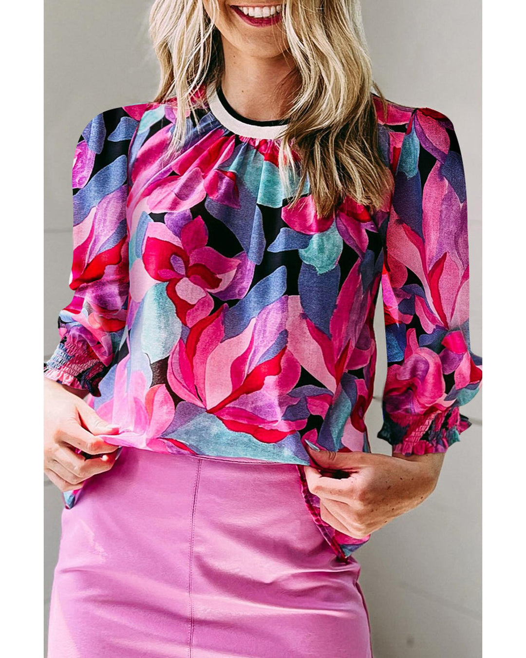 Elevate your wardrobe with this women's floral print top featuring trendy puff sleeves and a playful, romantic silhouette. The sophisticated ruched detailing and classic crew neck design make it easy to style for both casual and formal occasions. Crafted from 100% polyester, this versatile piece combines comfort and elegance, perfect for any outing.