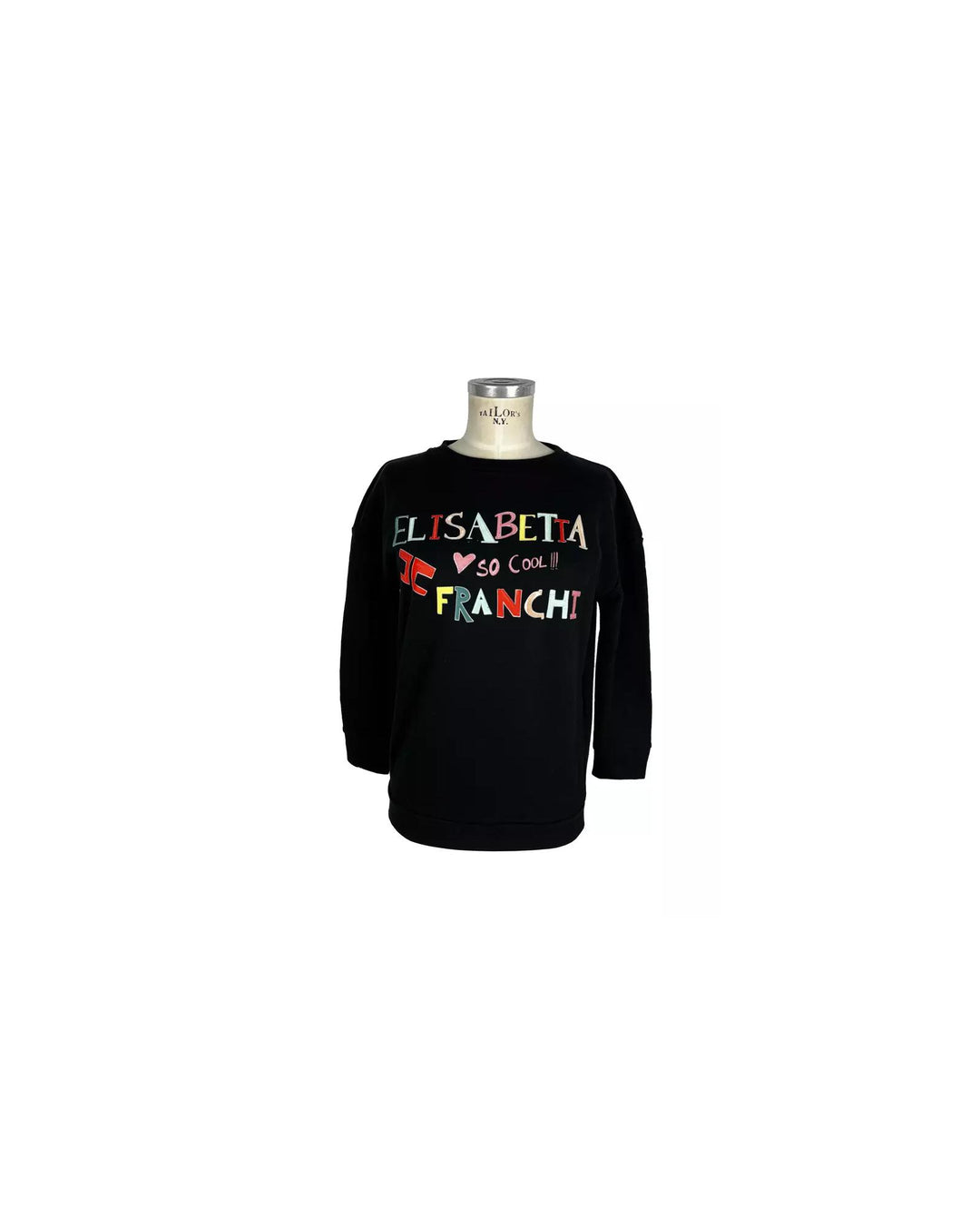 Black Cotton Sweatshirt with Front Print and Logo Patch - Made in Italy 42 IT Women