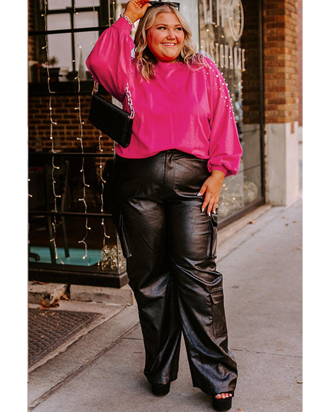 Strawberry Pink Pearled Decor Raglan Sleeve Plus Size Sweater - 3X