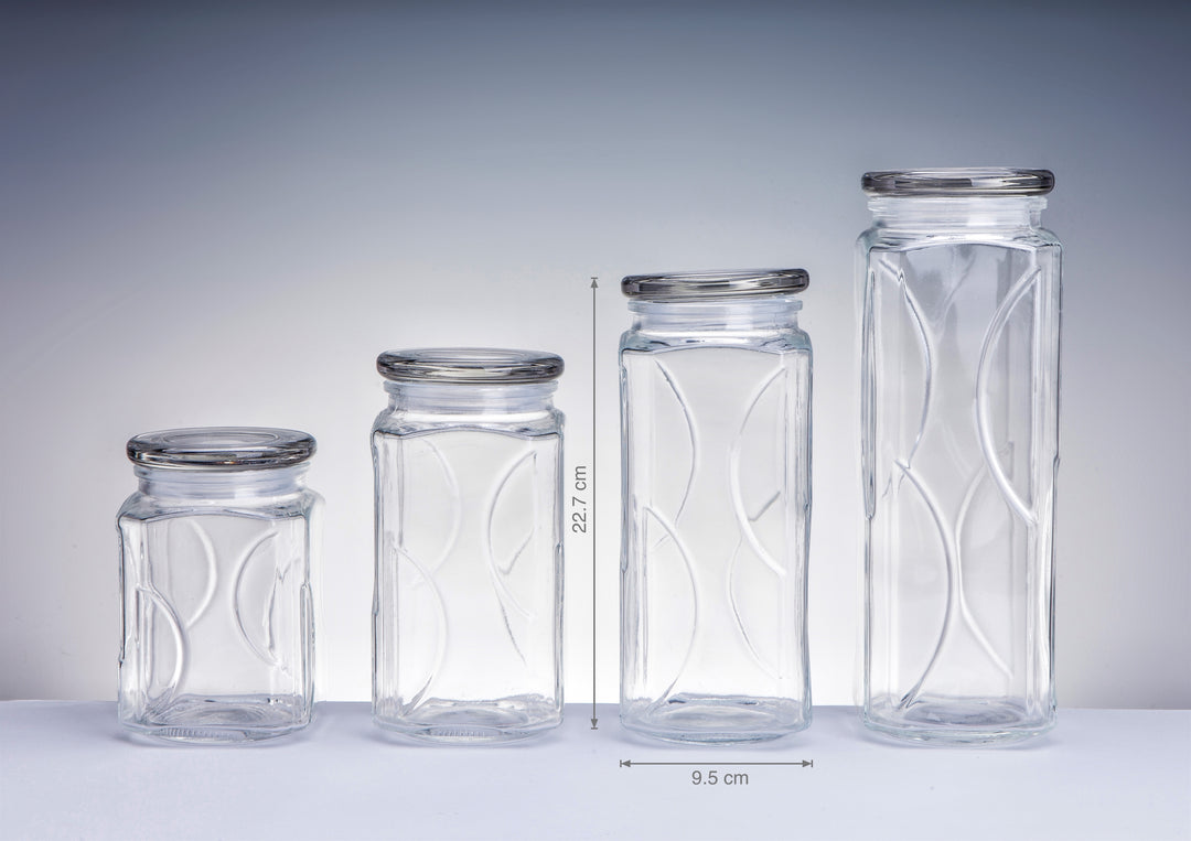 bulk 12 Swirl Embossed Squ Glass Jar w Glass Lid 22cm