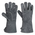 Grey 14-Inch Premium Leather BBQ Gloves - Heat-Resistant Up to 500 Degree