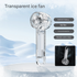 Transparent White Portable Mini Cooling Fan with Semiconductor Ice Compress - USB-C Rechargeable, 3-Speed Turbine & Transparent Design